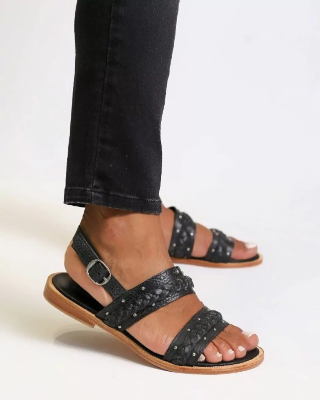 Las Sandalias de cuero Brisa con detalles trenzados y pequeñas tachas que les dan un toque especial.