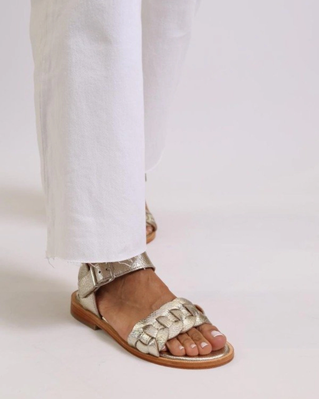 Sandalias de cuero con base de suela natural y detalle trenzado en la capellada.