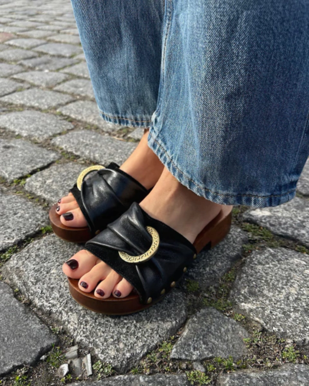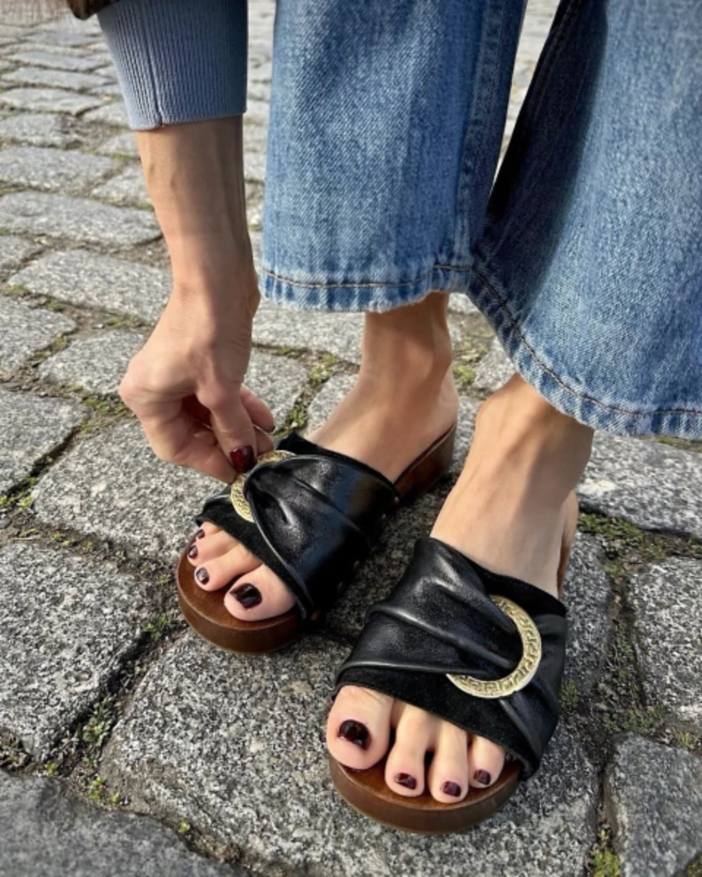 Un clásico con onda. 💫 Base de madera de cedro con taco de 4 cm y plataforma de 2 cm, cómoda y con buena altura.